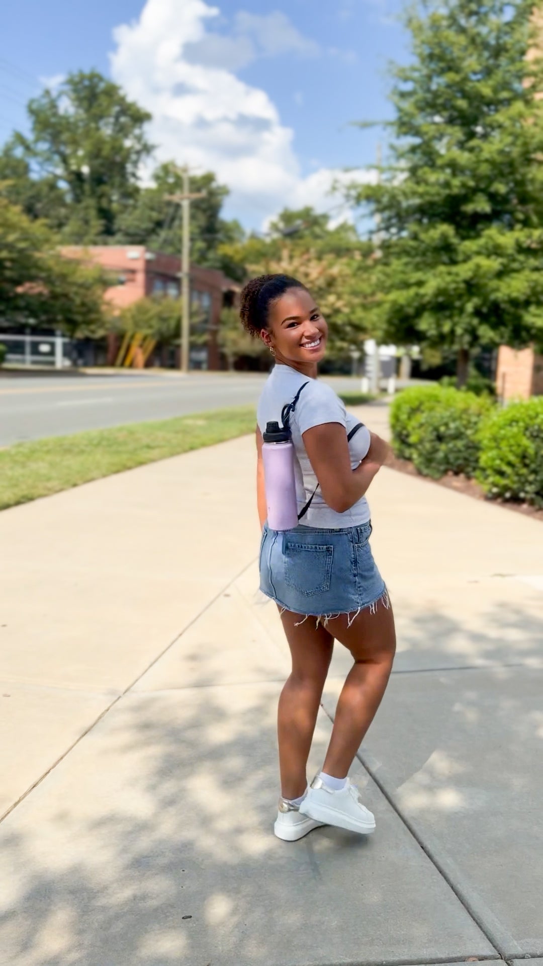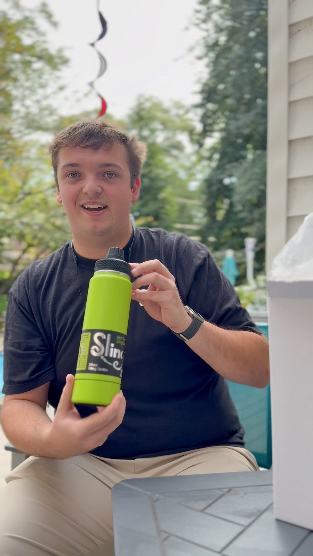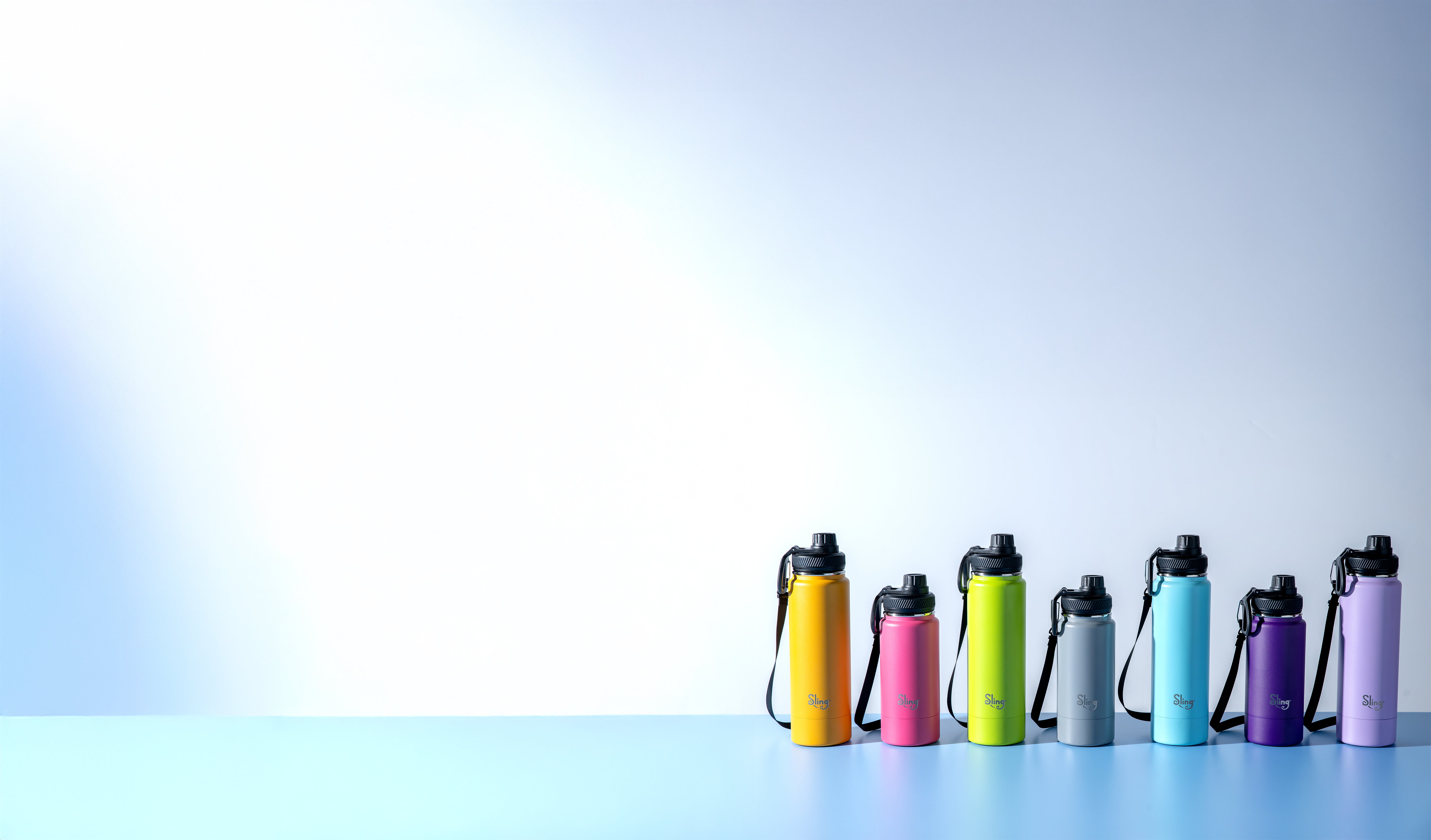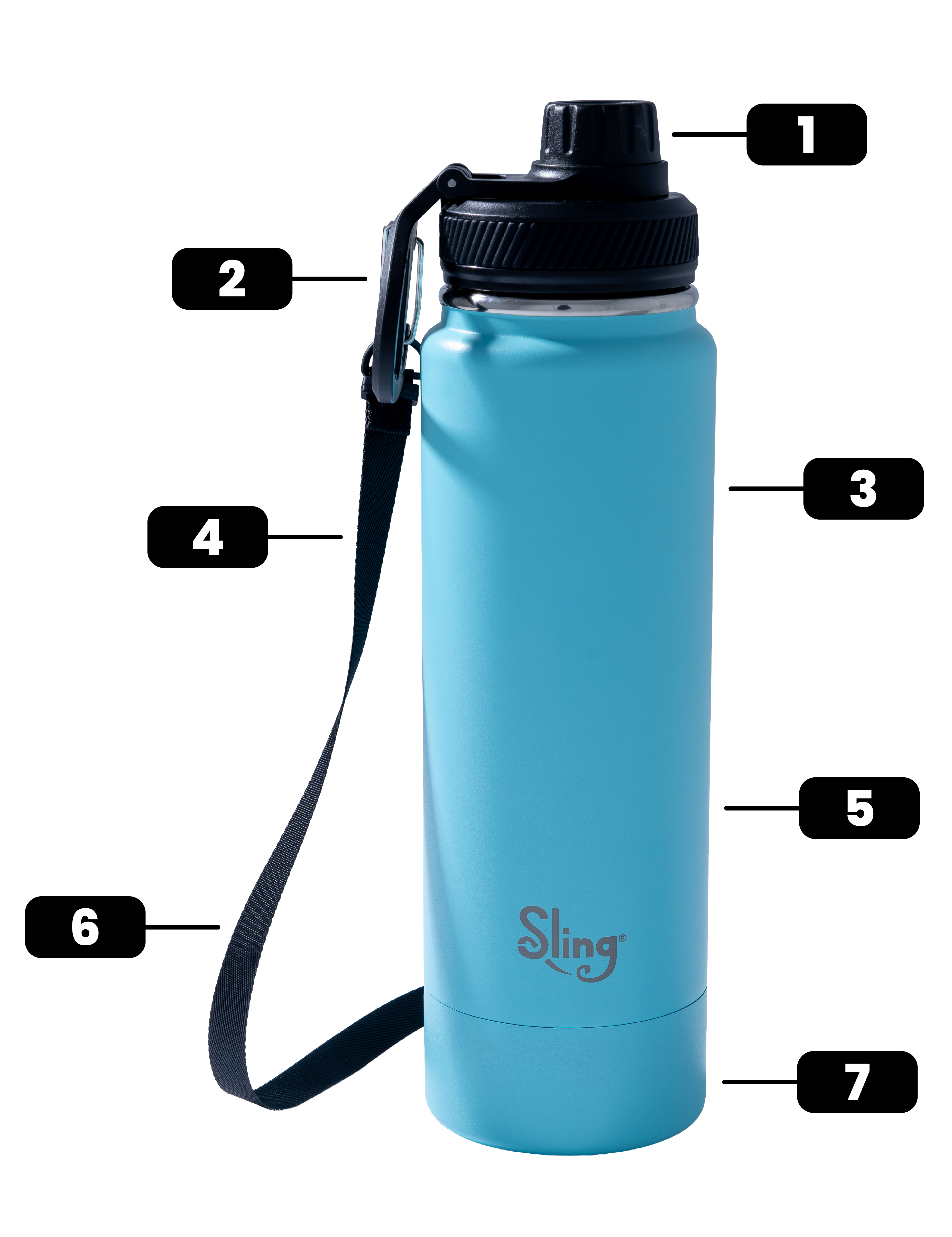 Simply unscrew the base and twist on another. Then press the button to Unleash the Leash, clip it on, wear your bottle, then press the button and let it retract smoothly when you reach your destination. One size fits all Sling Bottles. Endless color combos. Total vibe control.